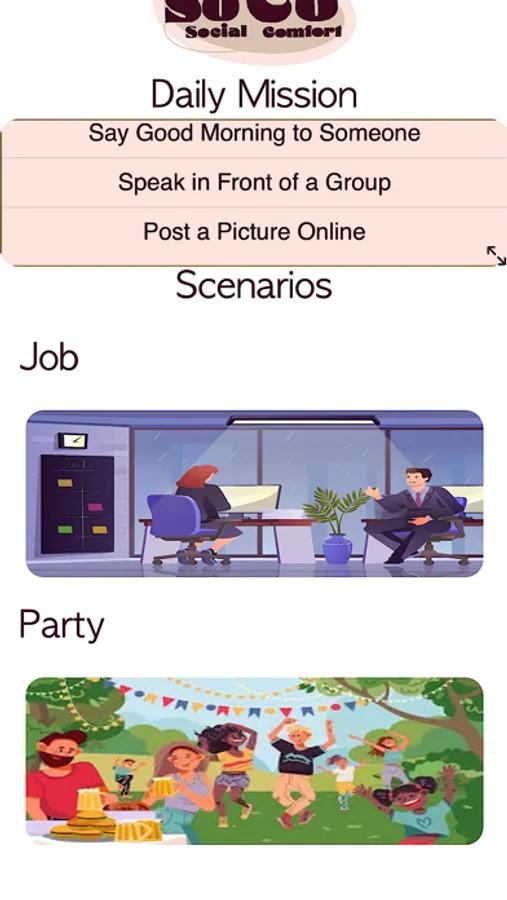 Hello all SoCo users, I hope you enjoy using our app as we will continue making changes in the future to help you fight off your anxiety. Share with a friend of a friend who you know it would help. Please leave any feedback or report any bugs you may come across to help us improve your experience.
