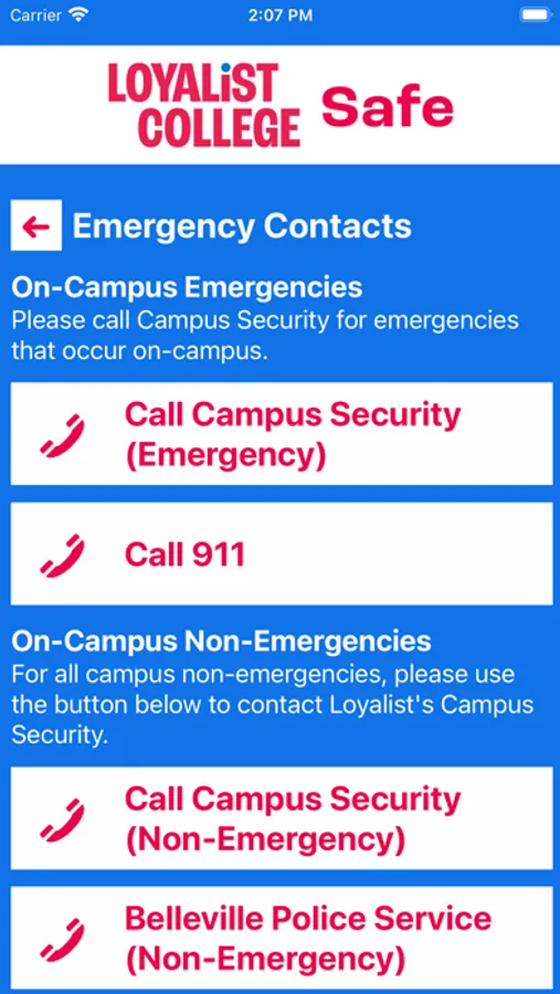 - Emergency Contacts: Contact the correct services for the Loyalist College area in case of an emergency or a non-emergency concern