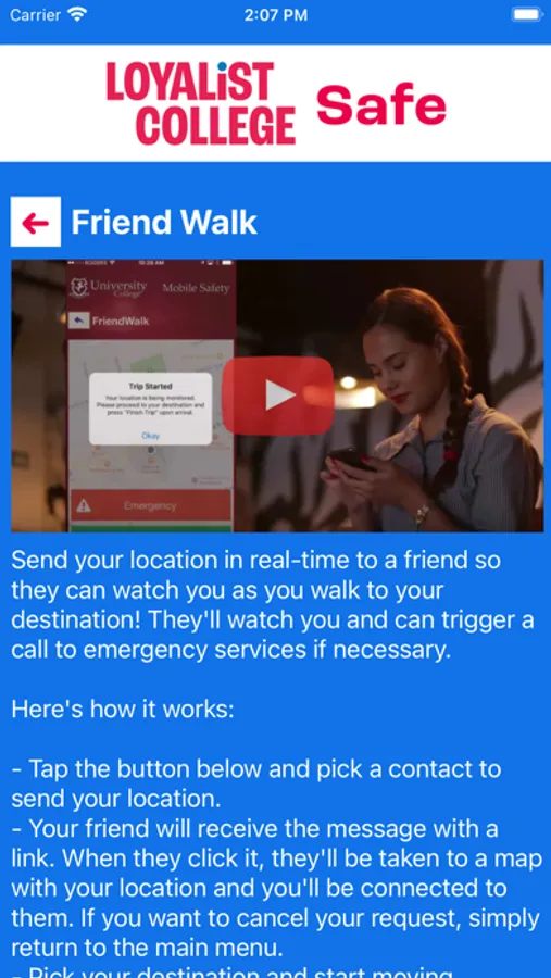 - Safety Notifications: Receive instant notifications and instructions from Loyalist College safety when on-campus emergencies occur.
