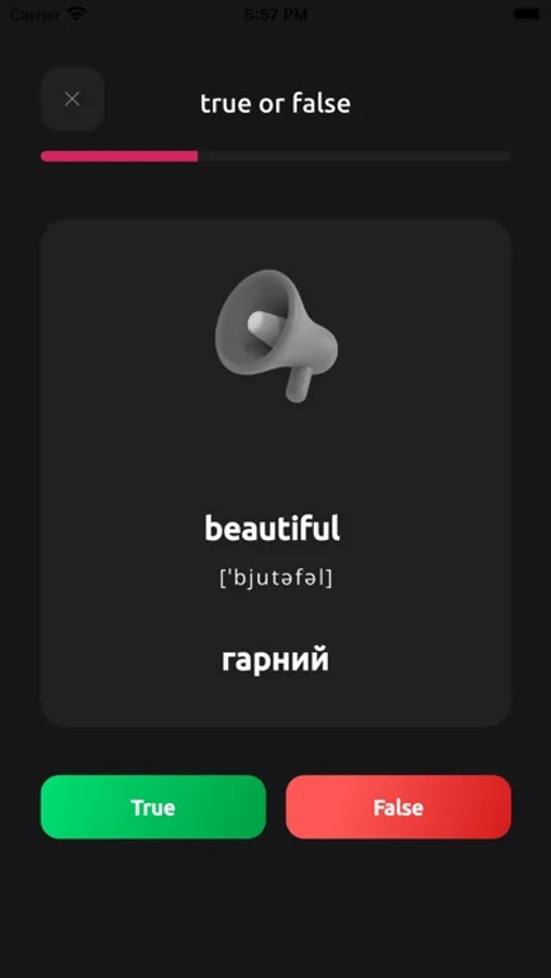 - Три рівні складності слів, від англійської для новачків до рівня вище середнього.