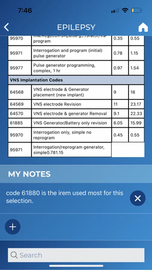 The Neurospine Coder app provides the neurological CPT codes through a searchable, categorized, easy to understand interface. The app allows doctors to attach notes to each CPT code for future reference.