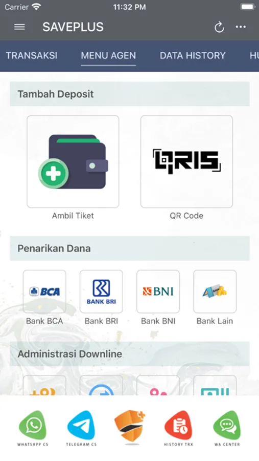 • Lihat Agen Downline beserta aktivitas transaksi Agen Downline