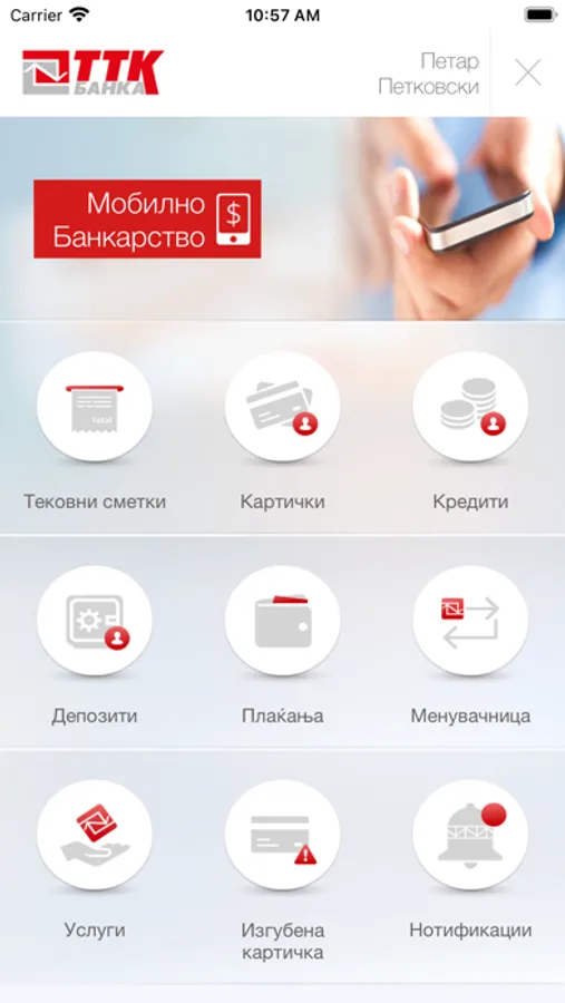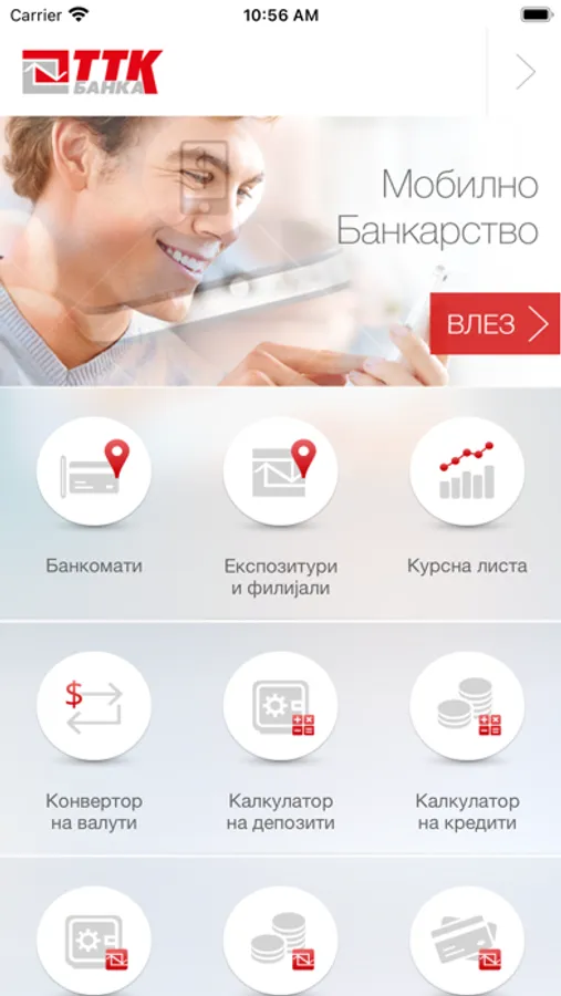 Апликација за мобилно банкарство за клиенти на ТТК Банка АД Скопје Ви ги овозможува следните опции: