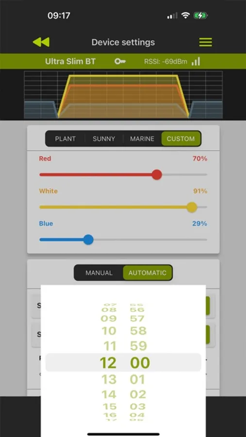 - adaptation of lighting parameters to the needs of the tank within 4 modes: PLANT, SUNNY, MARINE, CUSTOM;