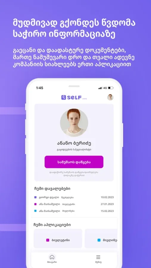 SELF is the first application that is fully optimized for the Georgian labor code and lets the company to Manage administrative processes in full compliance with the law.