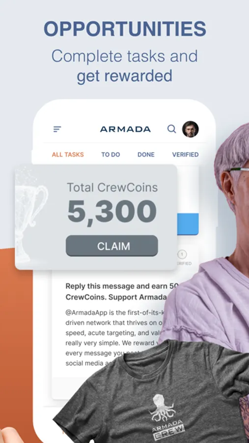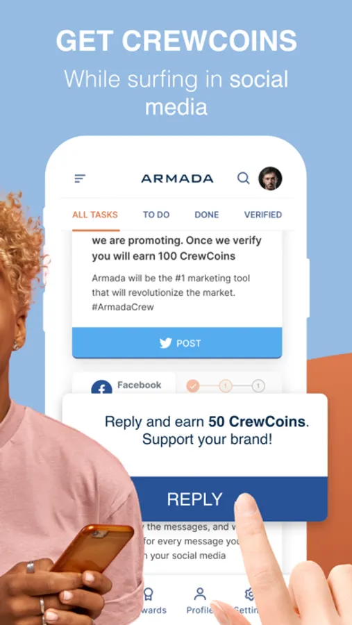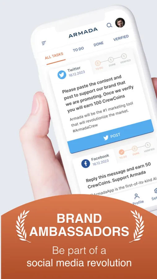 Armada is the first-of-its-kind Al-driven network that thrives on our speed, acute targeting, and values. It's really very simple. We write messages, you preview the messages, and we reward you for every message you post through your social media accounts.