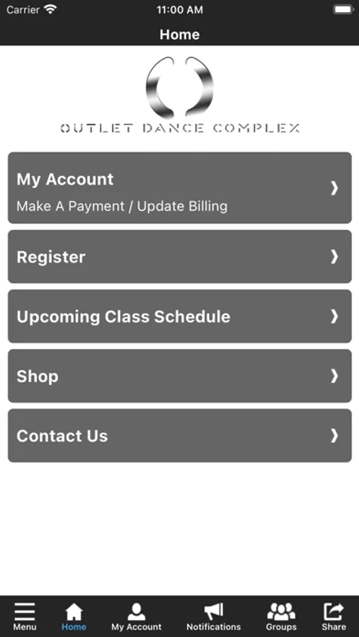 The Outlet Dance Complex app allows you to manage your account with ease, register for classes, camps, and special events. You'll also receive important notifications about class changes, closings, registration openings, special announcements, and upcoming events.