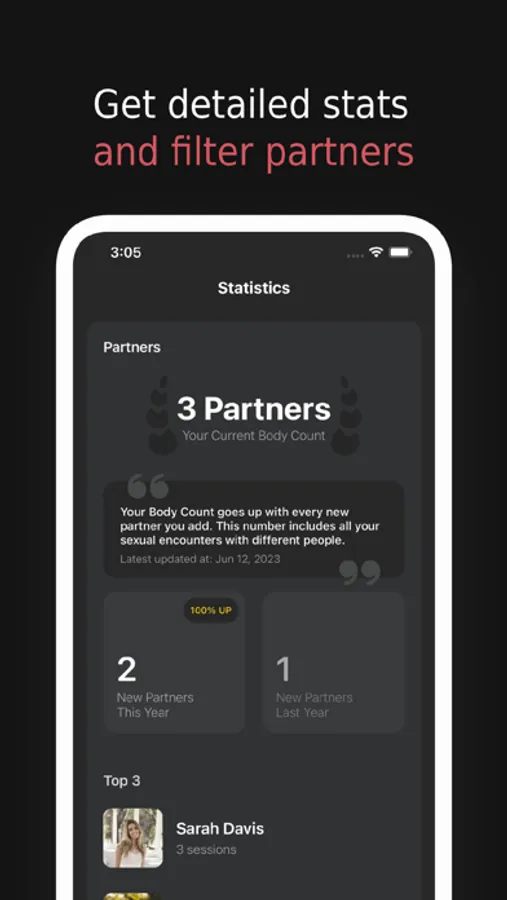 Stay connected to your sexual experiences like never before with Body Count Tracker—a friendly and intuitive app designed to enhance your personal connections and provide valuable insights along the way. With our app, effortlessly track your partners, manage your sexual history, and keep your cherished memories safe.