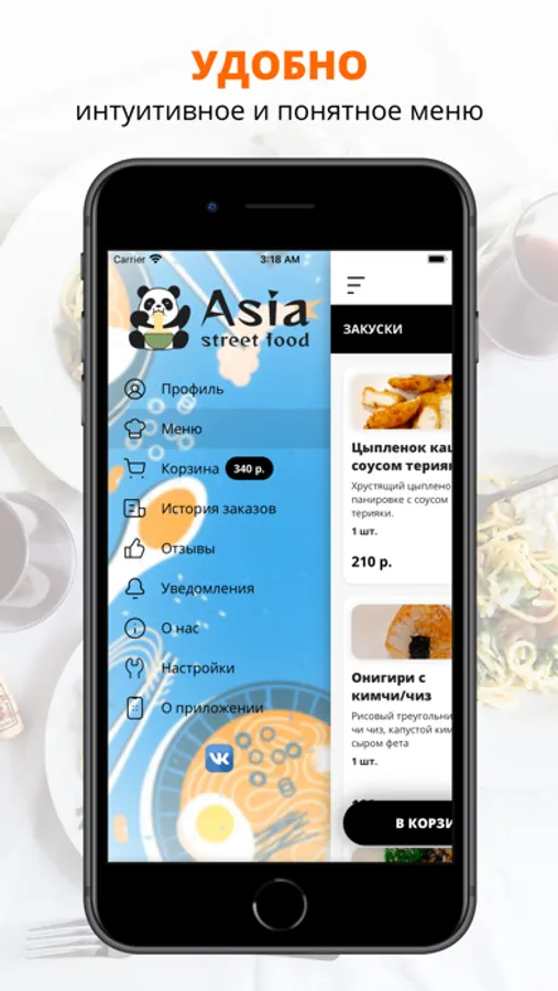 посмотреть меню и совершить онлайн-заказ,