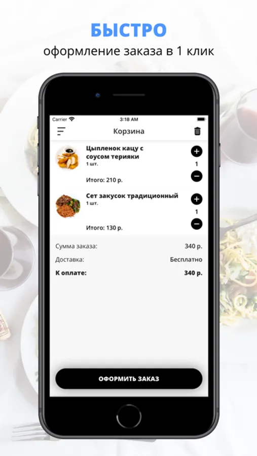 Скачивайте наше приложение, оформляйте заказ и наслаждайтесь любимой едой, где бы Вы ни были! Приятного аппетита!