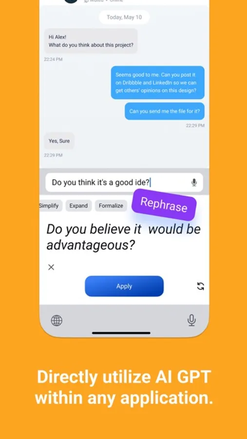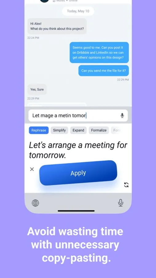 Craft comprehensive messages effortlessly with our real-time writing assistance. The Owl AI Keyboard suggests context-aware and relevant text suggestions, enabling you to express your thoughts quickly and accurately. Say goodbye to the frustration of slow typing speeds and hello to seamless and fluent communication.