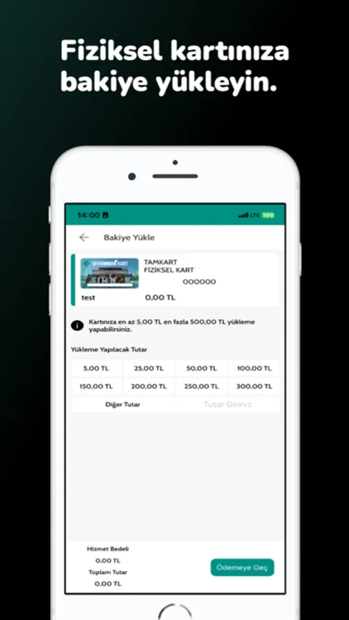 Şehir toplu taşıma kartlarına bakiye yüklenebilir ve görüntülenebilir.