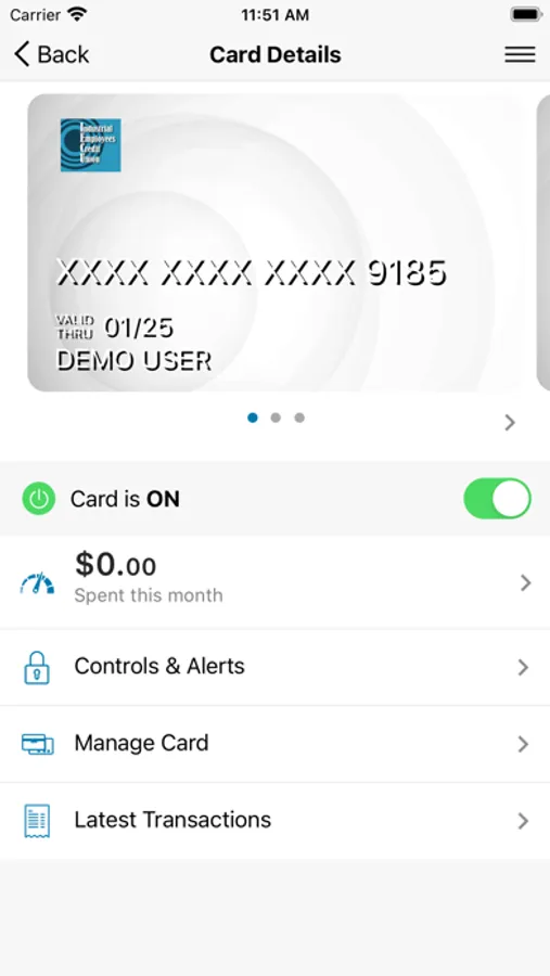 Card Controls puts you in control of your debit and credit card usage. Card Controls helps you protect your debit and credit cards by sending you transaction alerts and giving you the ability to define when, where and how your cards are used. Simply download the Card Controls app to your smartphone, then customize your alert preferences and usage settings to monitor and manage your cards.