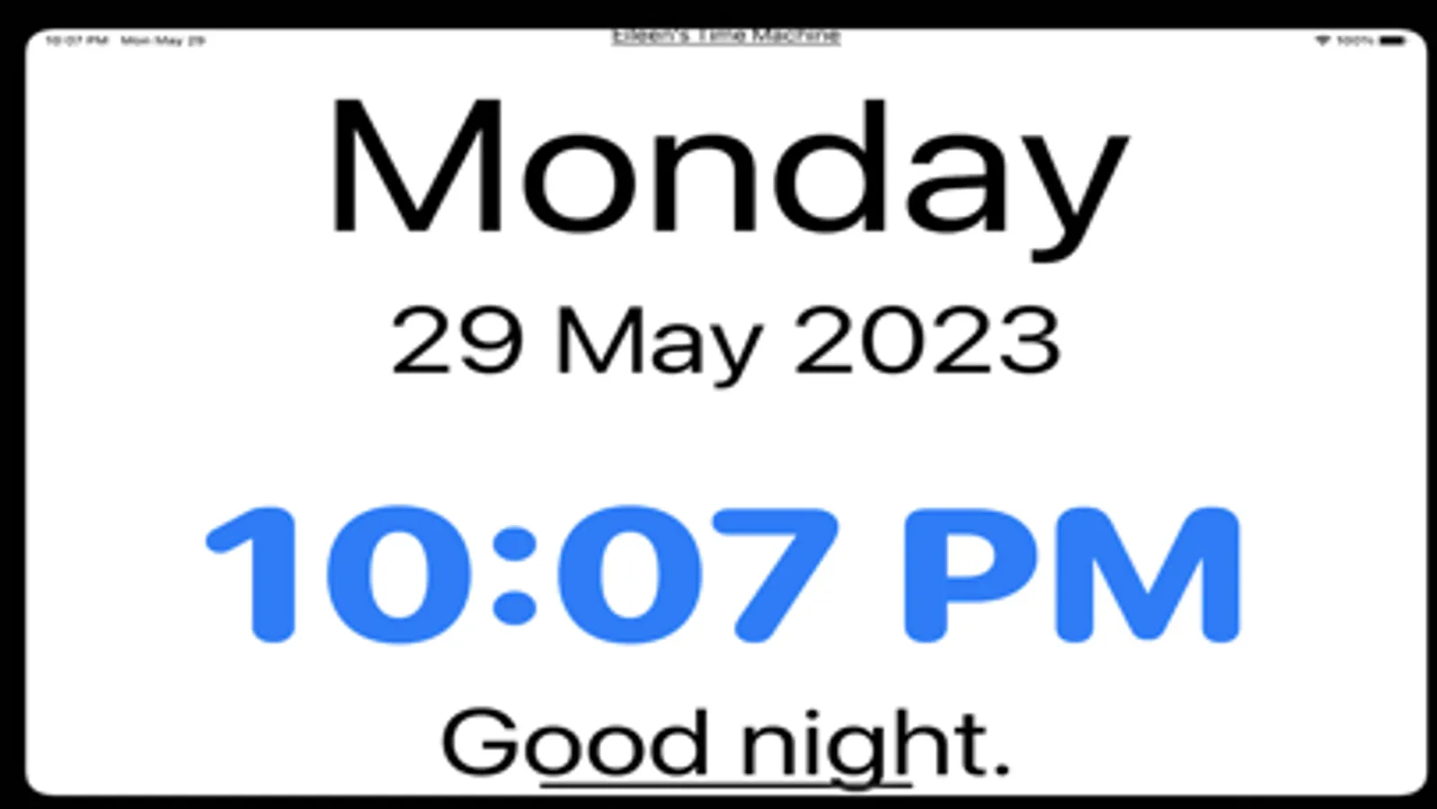 This is a free live clock display, with day, date and timely greeting. It has been designed to help dementia sufferers maintain a sense of timing and give assurance especial in the foggy times of unease.