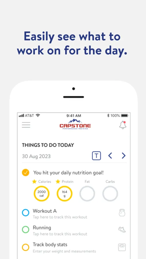 With the Capstone App, you will have access to workout programs designed specifically to help you reach your fitness and health goals! You can follow & track your workouts, your nutrition, your lifestyle habits, measurements and results–all with the help of your coach.