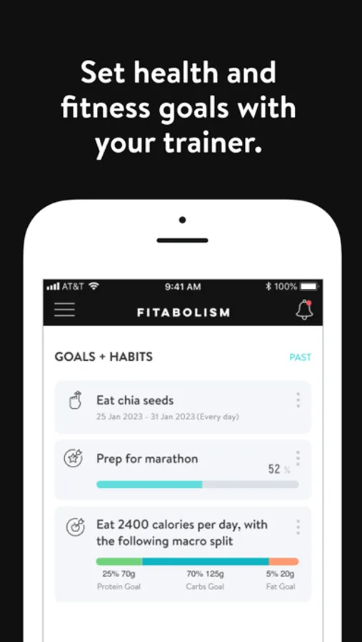With the Fitabolism Nutrition App, you will have access to workout programs designed specifically to help you reach your fitness and health goals! You can follow & track your workouts, your nutrition, your lifestyle habits, measurements and results–all with the help of your coach.