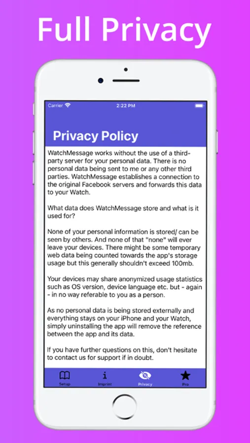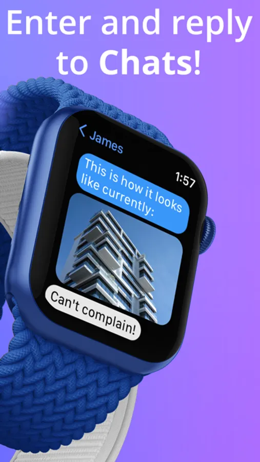 WatchMessage does NOT breach your privacy in any way. All data is being handled safely: Because all operations are being handled by your iPhone there is no need of a potentially insecure third-party server. All your data stays on your devices.