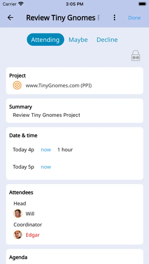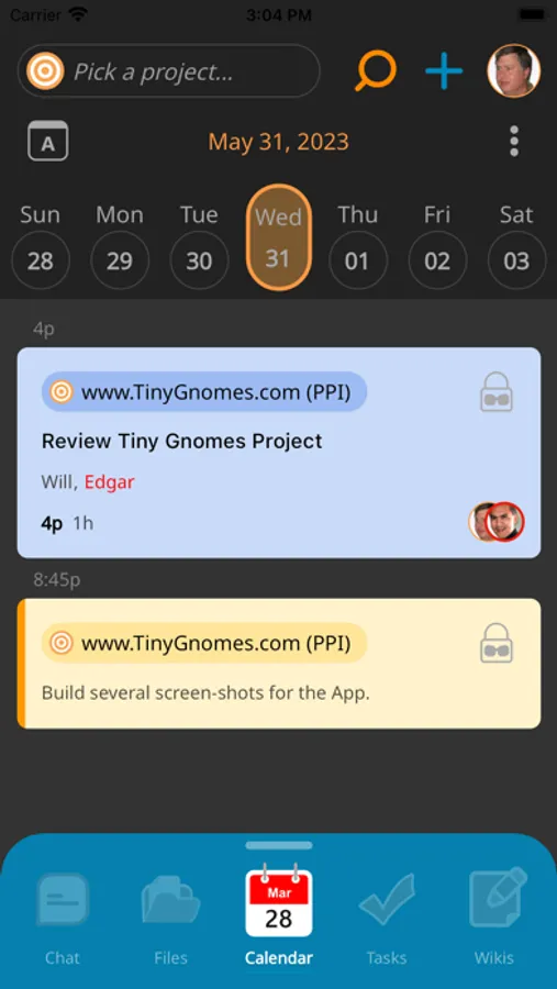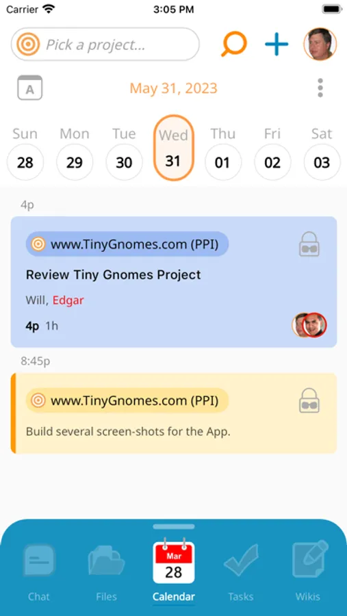 TinyGnomes is a project management calendar app integrated with the TinyGnomes.com web service.