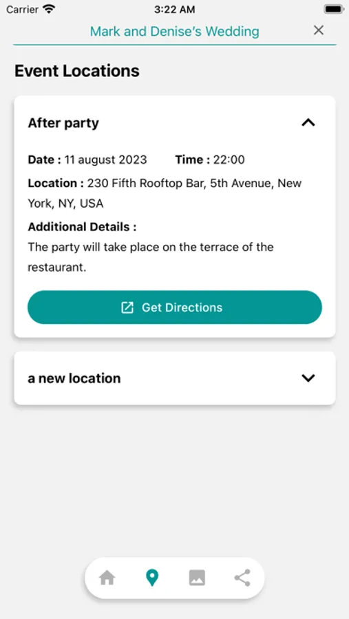 Eventify goes beyond just photo sharing. It also offers the option to add event locations, enabling your guests to receive real-time directions for reaching the venue.