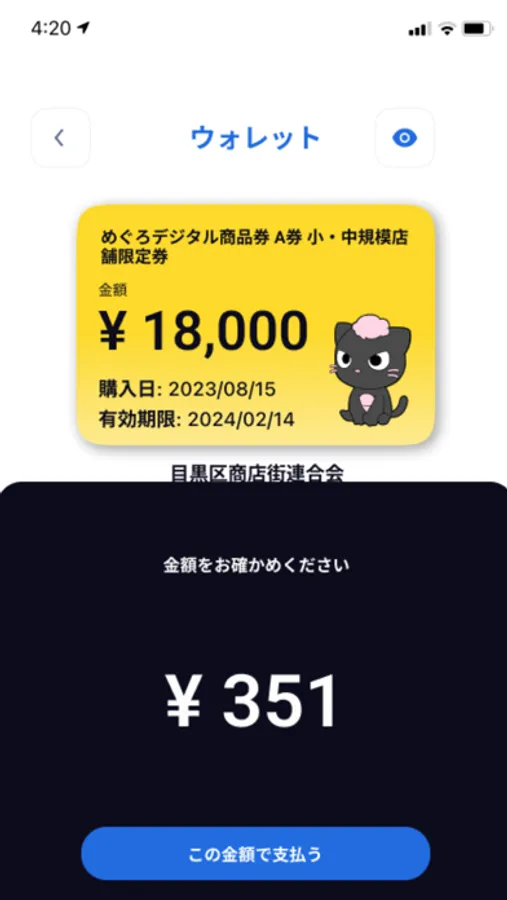 This is a mobile payment app that can be used at particular stores which handle the digital version of Meguro Premium Voucher.