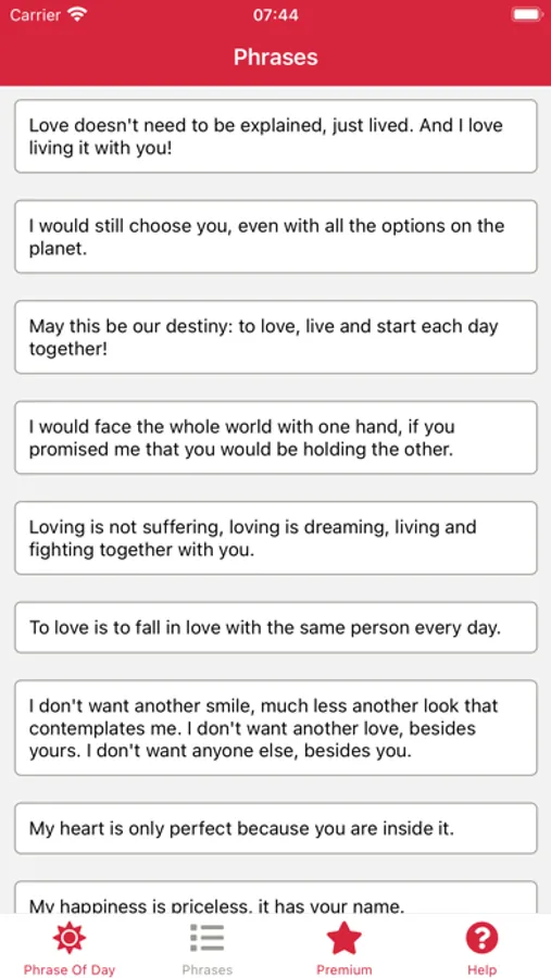 Inspiring Love Phrases: The app offers over a hundred phrases carefully selected to convey genuine feelings of love, passion and affection. .