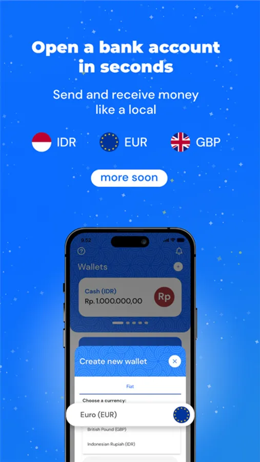 > No need to visit a branch. IDR, EUR, GBP available now with more currencies coming soon.
