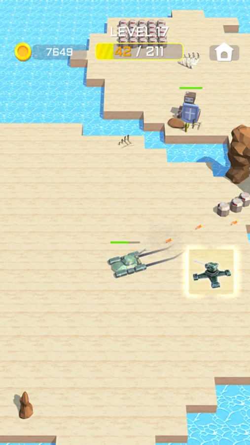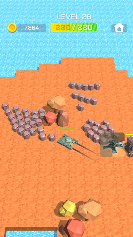The player controls the chariot, shoots the enemy, and breaks through the encirclement. When destroying the enemy, various buffs and gold coins will be continuously dropped. Players can choose to eat the buff according to their own situation, so as to gain an advantage in the battle situation and even reverse the situation. situation. After the game is over, players can also use the gold coins they get to upgrade the level of their equipment, so as to gain more powerful vitality and continue to break through!
