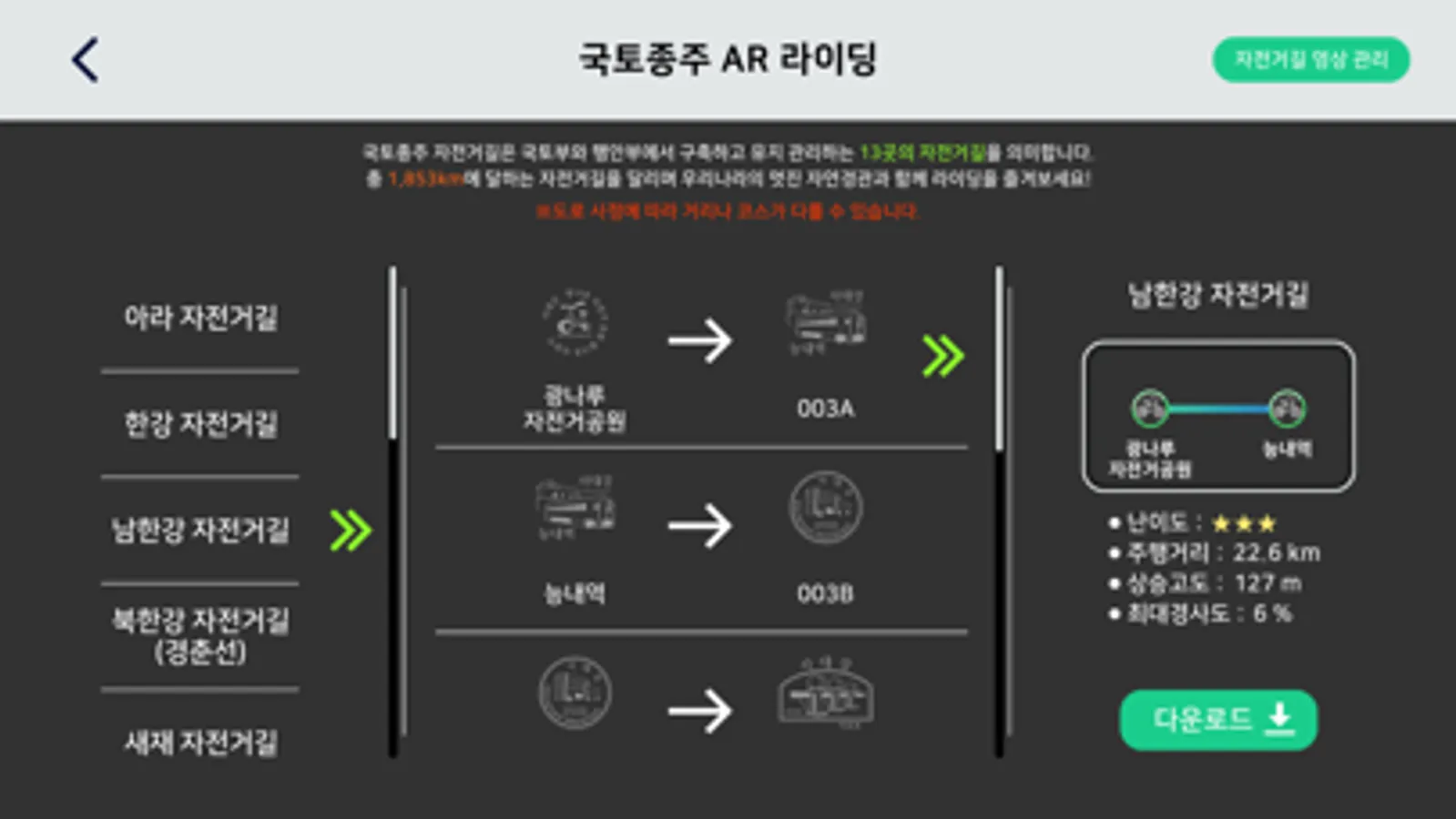 1. 13개의 국토 종주 자전거길을 실내에서 완주해볼 수 있습니다.