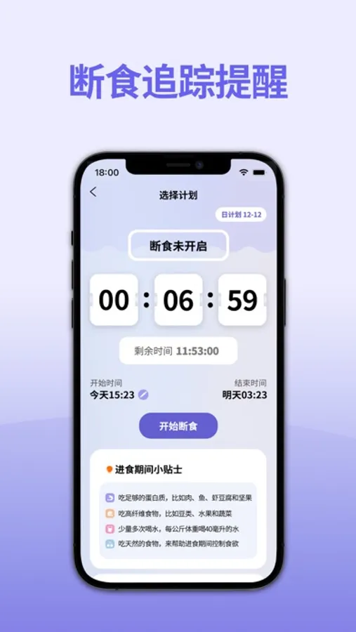 智能断食追踪:精确记录您的断食时间,提供定时提醒,帮助您始终掌握进食窗口,有效控制饮食习惯。