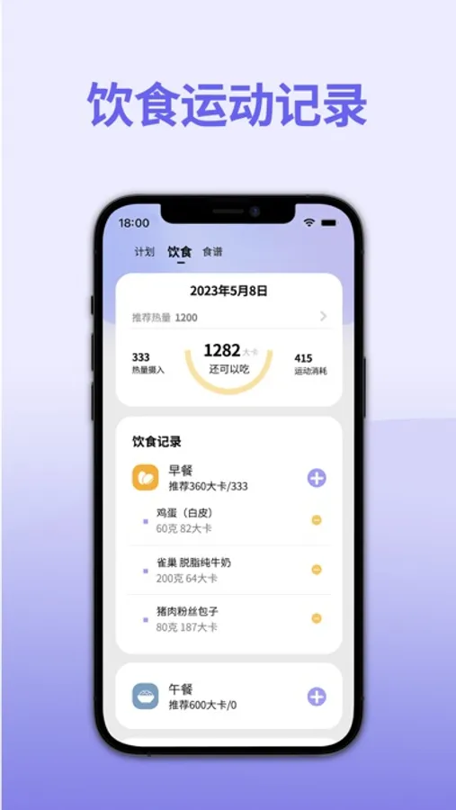 每日饮食推荐:根据您的身体特征和目标提供实用的饮食建议,让您享受美味的同时,合理搭配餐食,控制热量摄入。