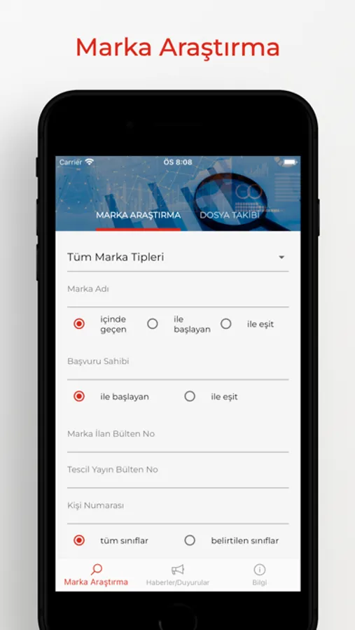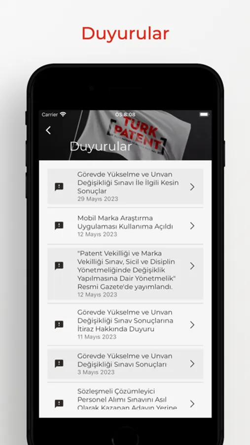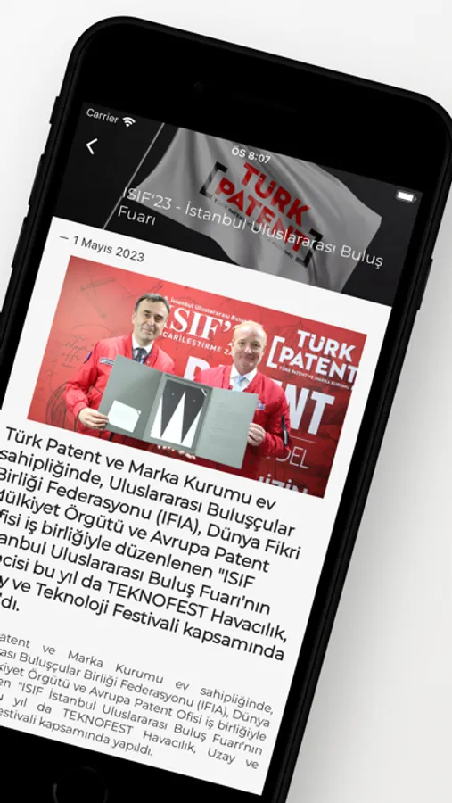 Türk Patent ve Marka Kurumu mobil uygulaması ile Kurum faaliyetlerimizi düzenli ve güncel olarak takip edebilir ve marka, patent ve tasarım araştırması gerçekleştirebilirsiniz.