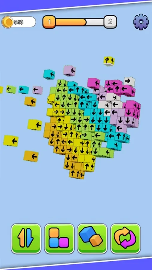 Arrow Cubes is a very fun casual puzzle game. The gameplay is a brand-new block elimination gameplay. If you want a brain-burning gameplay experience, you might as well try this game. It contains The gameplay elements are very special. You need to click out all the blocks according to the arrows. Each block is in a different direction, so if you want to successfully release all the blocks, it will still test everyone's logical thinking. Come on Experience it!