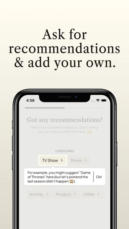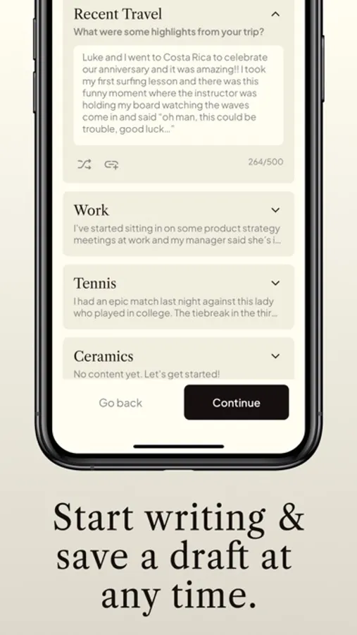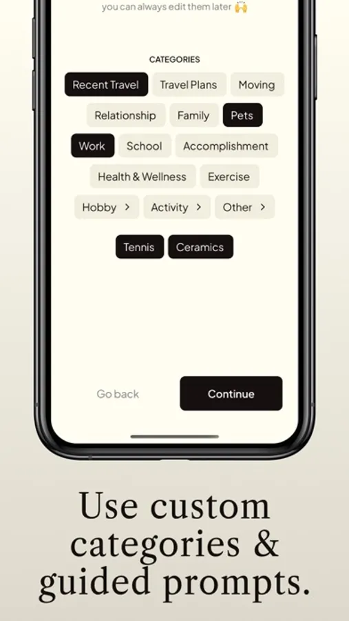 • Use guided prompts and custom categories to organize your updates