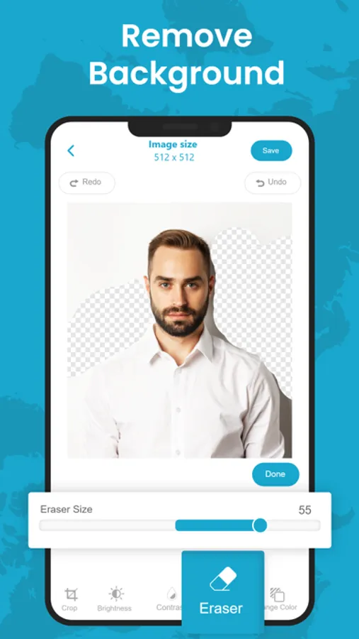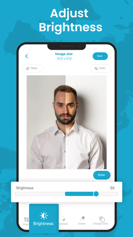 Passport size photo maker have professional editing tools like change Background, White Balance, Brightness, Contrast, Saturation, and much more.