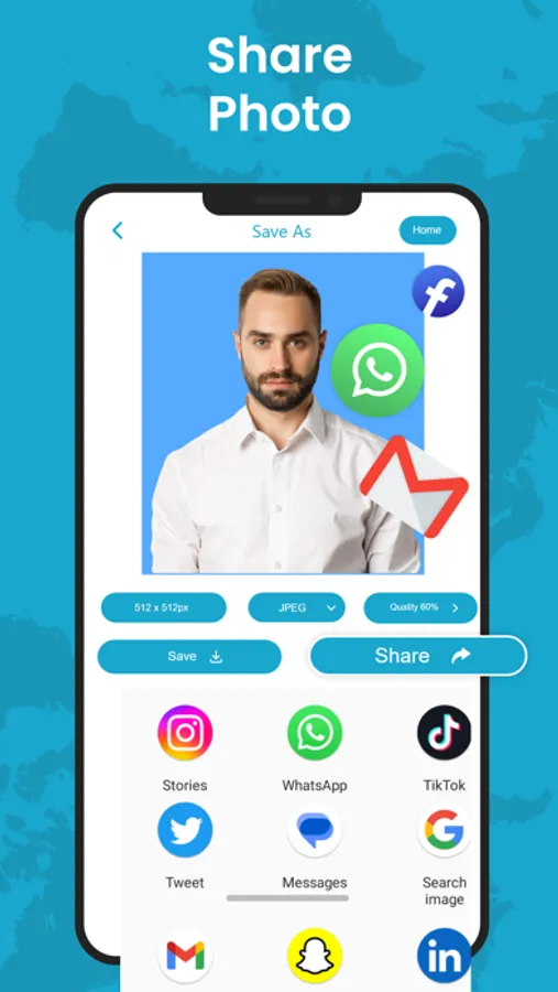 You can save and share your passport id photo Passport Photo Maker : Visa/ID