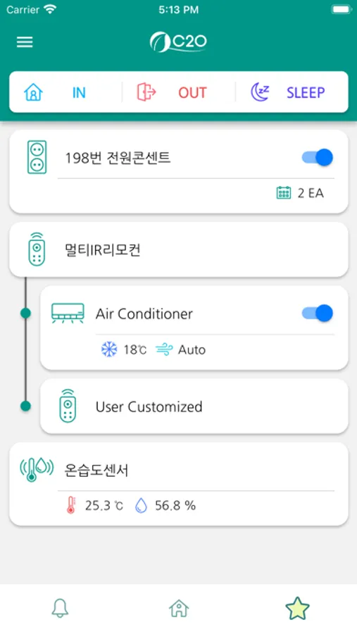 C2O는 스마트 소켓, 스마트 조명스위치, 스마트 디지털도어락, 스마트 전자식스위치, 스마트 센서 등을 제어, 설정, 조회할 수 있으며,