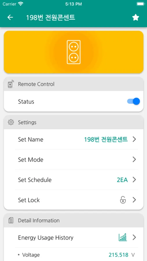 전력 사용 이력, 센서 이력, 실시간사용량 등의 내역까지도 확인이 가능한 어플리케이션입니다.