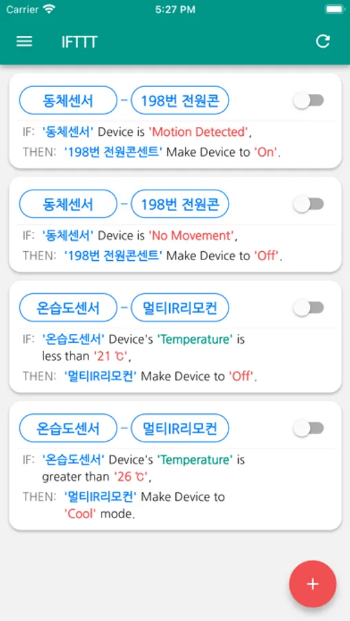 2) 스케줄, 자동제어 설정을 통한 디바이스 자동화