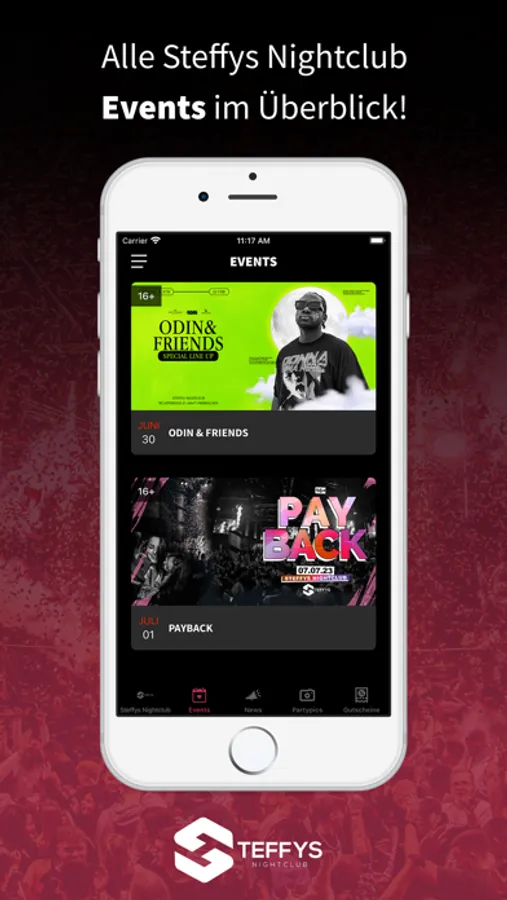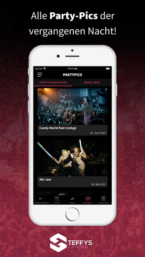 Lade dir unsere Steffys Nightclub App und werde Mitglied im Steffys Nightclub.