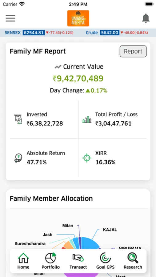UMANG MEHTA comes with advance and updated features that provide the best experience of managing your invested money in the mutual funds along with the other investments and allows you to draw the results of the funds anytime through systematic reports.