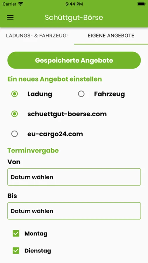 Nach Prüfung Ihrer Genehmigung aus dem Transport-, Speditions- oder dem Verladerbereich können Sie kostenlos Ihre Frachten und Ihre LKWs einstellen.