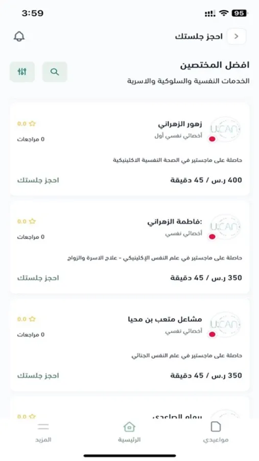 - الاختيار من بين مجموعة من المختصين والاستشاريين النفسيين المعتمدين
