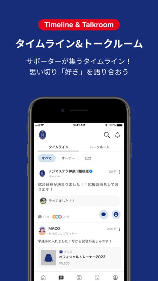 クラブやファンが好きな話題について話ができる場を作成できる、掲示板のような機能です。