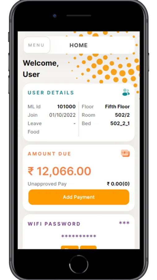 Manage Login, Update payment info, Raise Complaints, and Food QR Code all in one place.