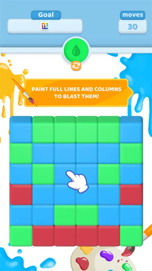 Paint full lines and columns to blast them and reach the goal! Will you succeed to anticipate the right moves? Let's try