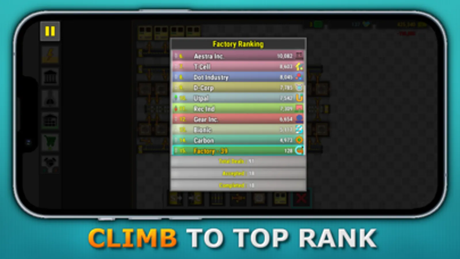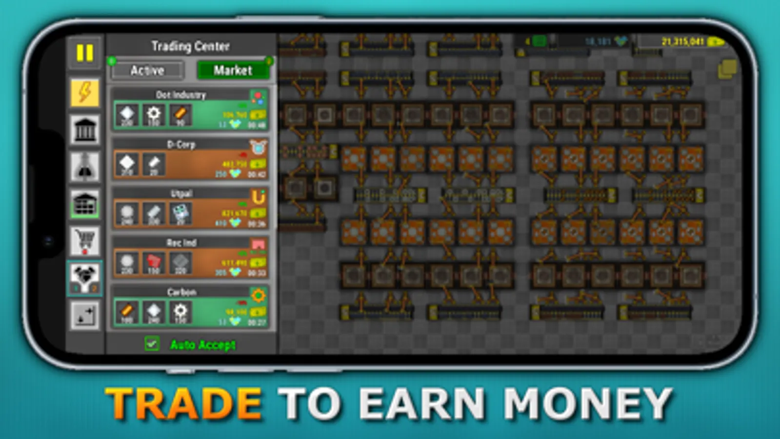 Get ready to build the ultimate factory and dominate the trading market. Starting from scratch, you'll design production lines, produce goods, and sell them in the market to climb the ranks and earn trade points.