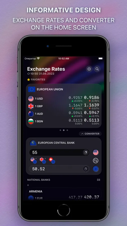 BankOf aggregator service - only official exchange rates of different countries' National Banks with beautiful informative widgets and currency converter with offline mode.
