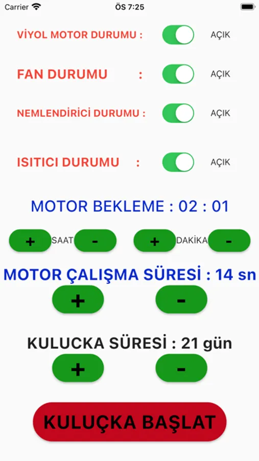 Wi-Fi ile cihazımıza bağlanarak internet ağı üzerinden kuluçka makinenizi anlık olarak kontrol edebilir, nem ve sıcaklık değerlerini uygulamamız ile anlık okuma sağlarsınız.
