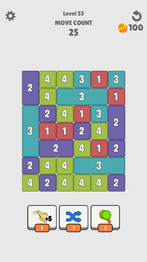 Stick Together Puzzle is a perfect twist to the Japanese puzzle game: Shikaku. The twist is at merging the squares, instead of dividing them.