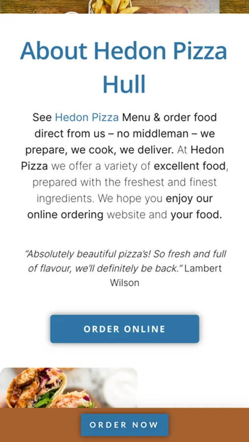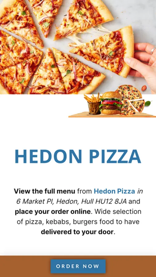 Order food online in Hedon, Hull! Download our official mobile app and Order DIRECTLY from Hedon Pizza located in 6 Market Pl, Hedon, Hull HU12 8JA.